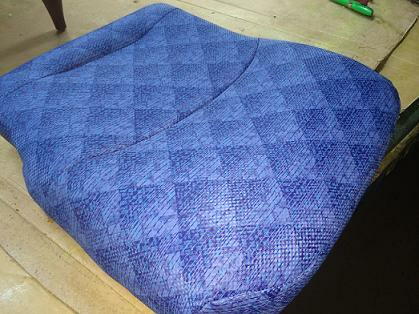 新車の重機のシートにパールレザーでカバーを張り込みました。このように、カバーを張り込み